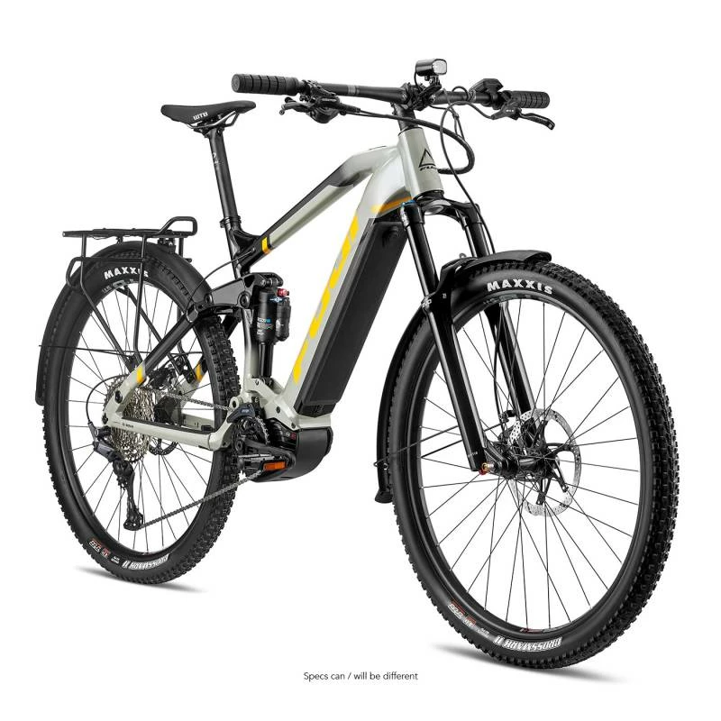 | Rahmen | Fuji A6-SL with down tube for integrated Bosch Power Tube 625-500Wh battery, Bosch Gen.4 motor cover, 4-bar suspension system, tapered 1 1/ 8″ – 1.5″ head tube, post disc mount, Boost 12x148mm cold-forged dropout and replaceable hanger, 130mm travel |