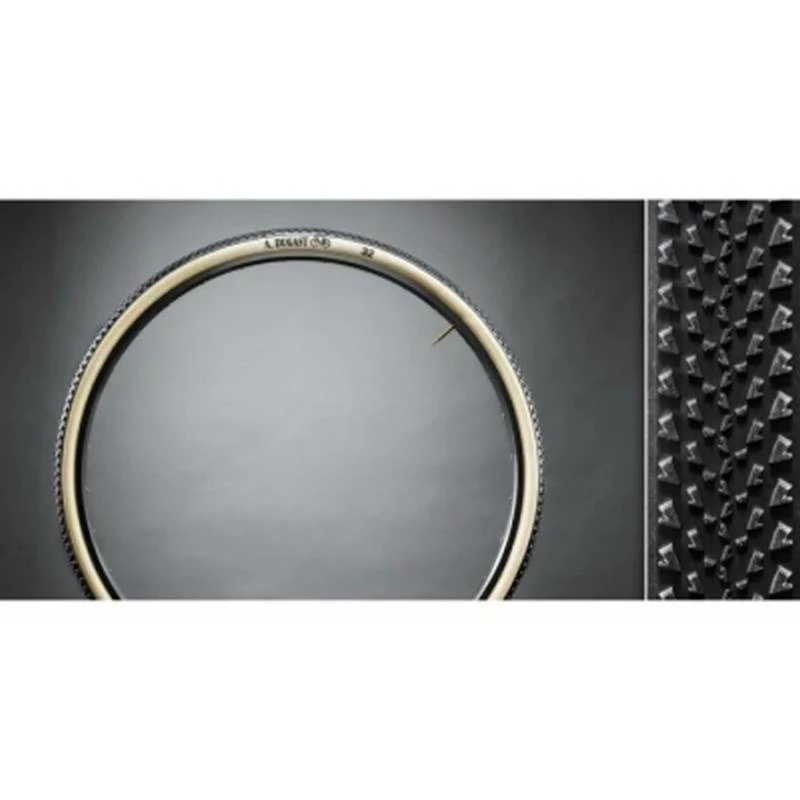 Schlauchreifen, Cross, 28 – 33mm breit, Dual Compound, Karkasse Cotton incl. Neoprene, Lauffläche schwarz, Seitenwand beige, Luftdruck 1,8 – 3,5 Bar, Gewicht 395 Gramm.